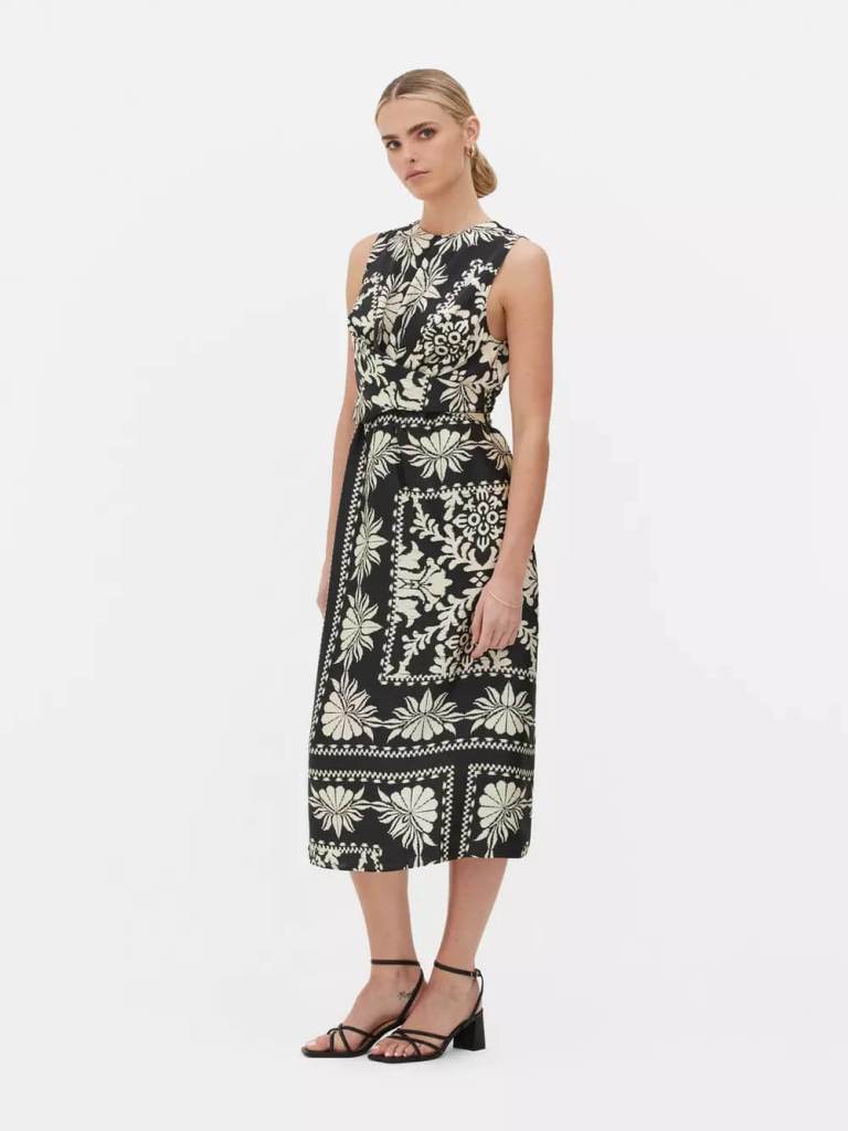 En este artículo sobre los vestidos de invitada de El Corte Inglés que más triunfan entre las mujeres +50 para bodas, bautizos y comuniones, ya os anticipábamos que quizás las menos atrevidas prefieran modelos en blanco y negro en vez de tanto colorido. Por eso también traer alguna opción así de Primark, como este vestido midi con estampado tipo pañuelo, corte midi y manga sisa. Sin duda, es elegante y favorecedor para este tipo de eventos, y solo cuesta 28 euros.