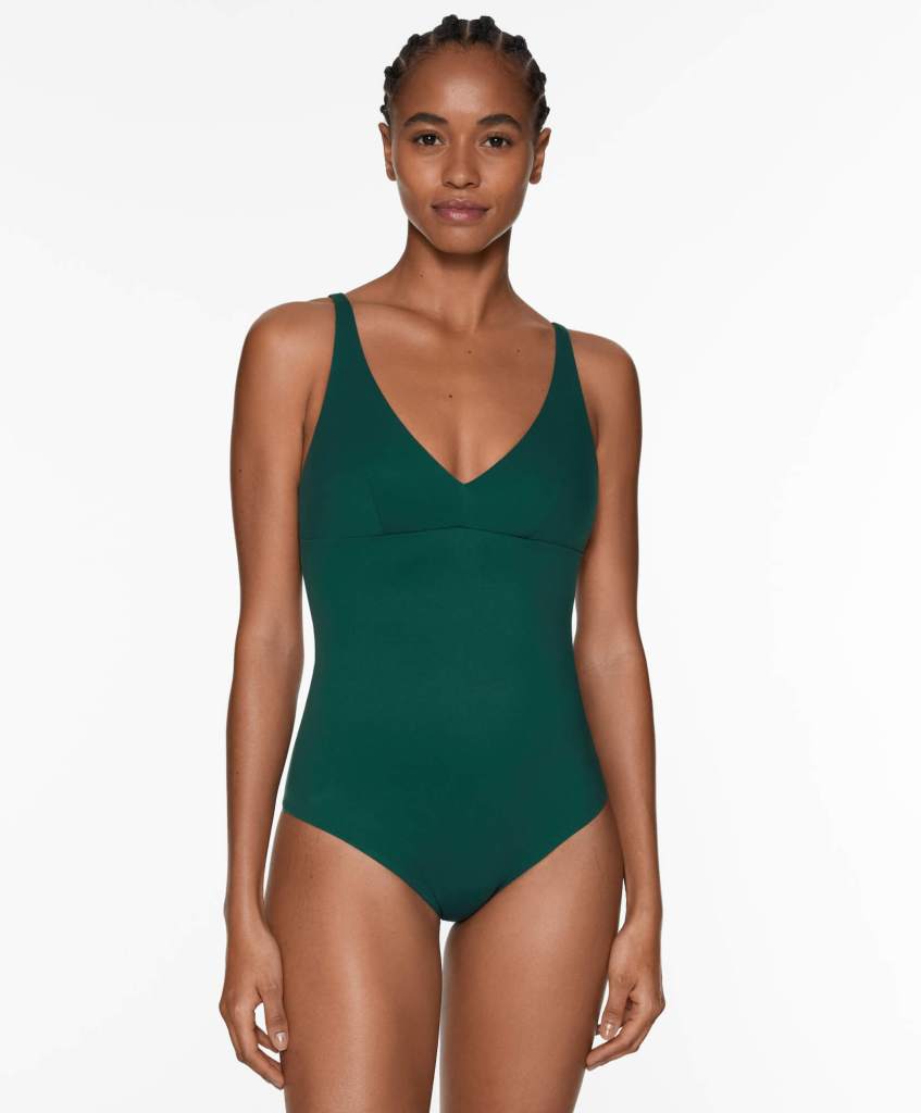 Los bañadores de escote triangular de Oysho son también amados por las mujeres +50, sobre todo aquellos que tienen su famoso tejido efecto moldeador extra compressive. Al contar con una braguita de cobertura clásica y con un escote en la espalda nada pronunciado, es una pieza cómoda que sienta bien (45,99 euros).
