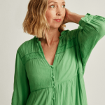 En la nueva colección limitada Rangsutra x C&A ya triunfa este vestido tipo túnica con bordados artesanales hechos a mano. Con profundo escote en pico con cordones para atar y hombros caídos, este modelo es cómodo para llevar a diario con zapatillas -como se aprecia en la imagen- o por la noche con alpargatas de cuña (59,99 euros).