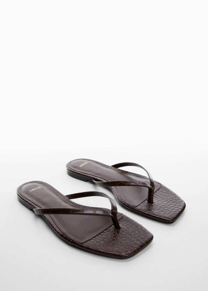 La tendencia de animal print que abraza a prendas también es visible en calzado, sobre todo con esos materiales de efecto piel animal. ¿La prueba? Estas sandalias planas de dedo con tejido efecto cocodrilo en color marrón chocolate. Minimalistas y sencillas, estas quedan bien con todo tipo de looks: desde uno más informal con shorts hasta con un pantalón palazzo. Y merece la pena invertir en ellas porque están tiradas de precio (29,99 euros 23,99 euros).