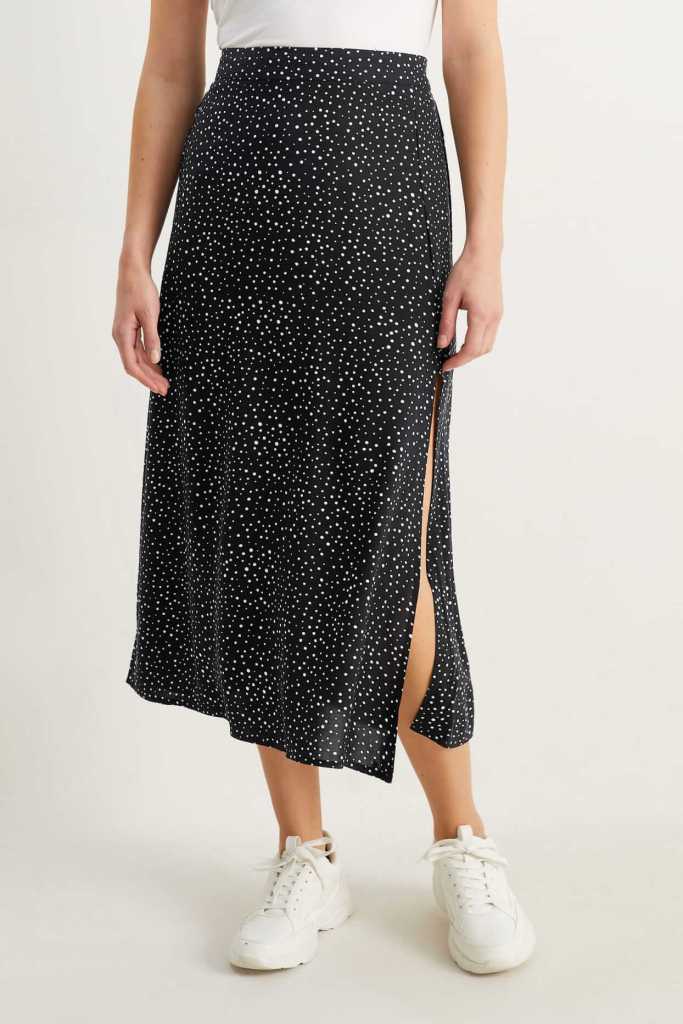 Tampoco podía faltar en esta selección una opción de lunares, como esta falda midi de C&A. Es un print que puede quedar súper elegante para las ocasiones más festivas combinada con una camisa blanca y unas cuñas negras, pero en este caso también quedan perfectas con zapatillas o con sandalias planas. Esta afina la silueta y es súper cómoda por esa raja lateral con la que cuenta. Y está tirada de precio (23,99 euros).