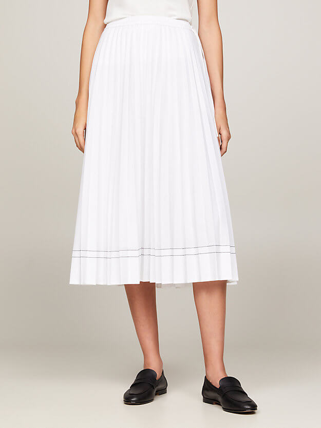 Para finalizar, un modelo súper práctico y versátil: una falda midi plisada en color blanco. Con una estética súper deportiva, al más puro estilo tenista, esta es ideal para llevar con una camiseta o polo azul marino y sandalias del mismo color o blancas. Esta favorece mucho al no ajustarse por ningún lado y cuenta también con cintura elástica con cordón para ser más confortable. Además, está ahora rebajada (249,90 euros 174 euros).