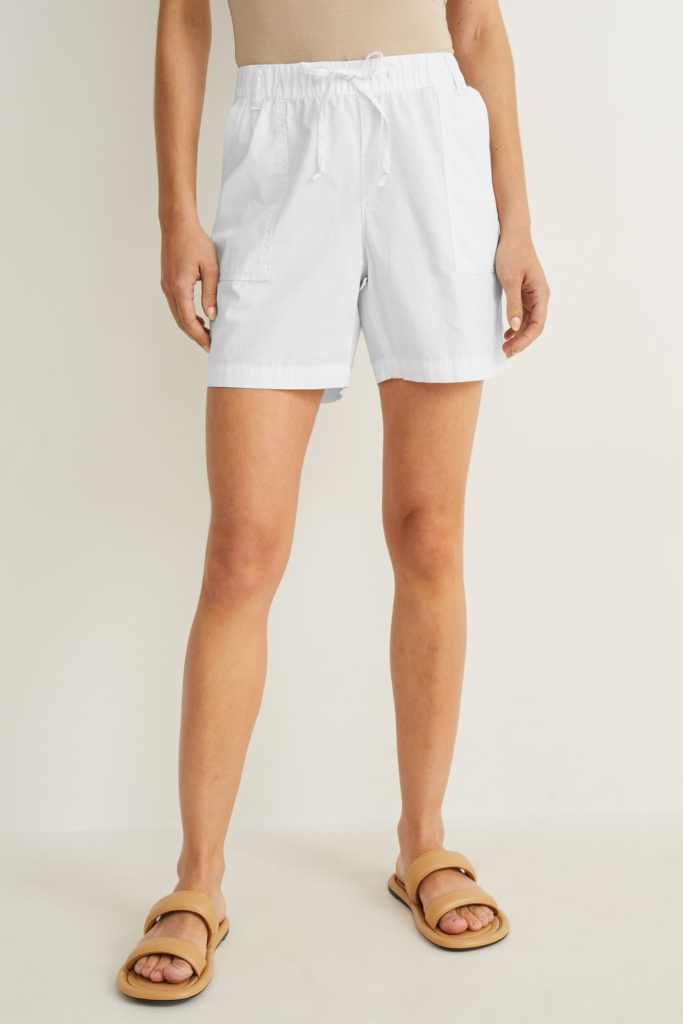 Un pantalón corto en blanco se puede considerar un básico de fondo de armario para muchas. Y más con modelos como este de C&A, que se pueden lucir tanto con bañador para ir a la playa como con camisetas para hacer turismo. Como se aprecia, su diseño es ancho con un tejido súper fresquito y con bolsillos. Esta pieza desenfada combina además con cualquier color, y está más que tirada de precio por su rebaja del 27% (17,99 euros 22,99 euros).