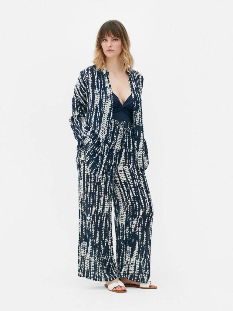 Esta opción de Primark nos parece que estiliza un montón por su estampado y su silueta. En primer lugar, al ser tan amplio y con un tejido fluido, favorece un montón. Pero es que su print azul y blanco que crea un efecto de rayas verticales también crea un efecto visual de alargar el cuerpo. Lo vemos ideal tanto para llevar a la playa con el bañador debajo y sandalias planas como para por la noche con una blusa y sandalias de tacón sensato (12 euros la camisa y 18 euros el pantalón).