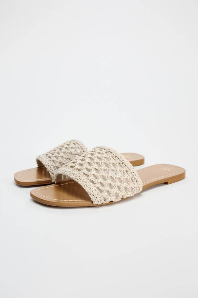 Sandalias planas con tejido entrelazado y detalle de pespunte en la suela, de Zara. Precio: 25,95 euros (Ref: 3616/410).