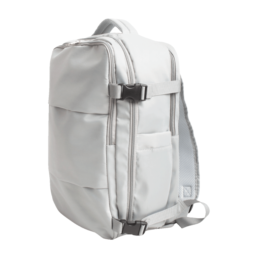 Como ves en la imagen, esta opción de Aldi está especialmente pensada para viajar por su tamaño y su diseño compacto. Con sus medidas de 42 x 31 x 17 cm y un capacidad de 20 litros, es ideal para llevar lo justo y necesario en una escapada corta sin necesidad de tener que pagar más dinero por facturar una maleta en un avión. O, por ejemplo, si viajas en coche y no hay mucho espacio en el maletero porque va completo, es también una opción que ocupa menos. Sea como fuere, esta mochila es apta para llevar como equipaje de mano, ligera y resistente al agua.