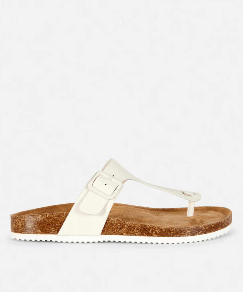 Y Primark no solo ha clonado estas icónicas sandalias de Birkenstock, pues también cuenta con otros modelos que recuerdan muchísimo a los de esta marca. Es el caso de este calzado en color blanco que cuenta con un diseño de dedo, y que también tiene ese diseño que aúna confort con versatilidad. Esta opción con tiras en "T" y plantilla de corcho que también está disponible en dorado vuelve a ser súper barata, pues cuesta 9 euros.