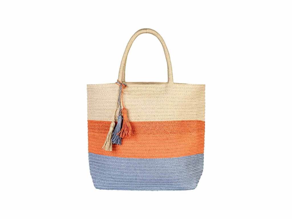 Si no te gustan los bolsos minimalistas y prefieres llenar tus looks de color y diversión, mucho mejor apostar por esta otra opción de Lidl de rayas de colores. Este bolso de playa combina el color natural de este tejido de imitación de esparto con el azul y el naranja en un diseño perfecto para llevar con vestidos lisos o conjuntos de lino. Además, es un modelo que también está decorado con unas borlas que cuelgan de una de sus asas. Y, por supuesto, también está tirado de precio por la rebaja del 40% (9,99 euros 5,99 euros).