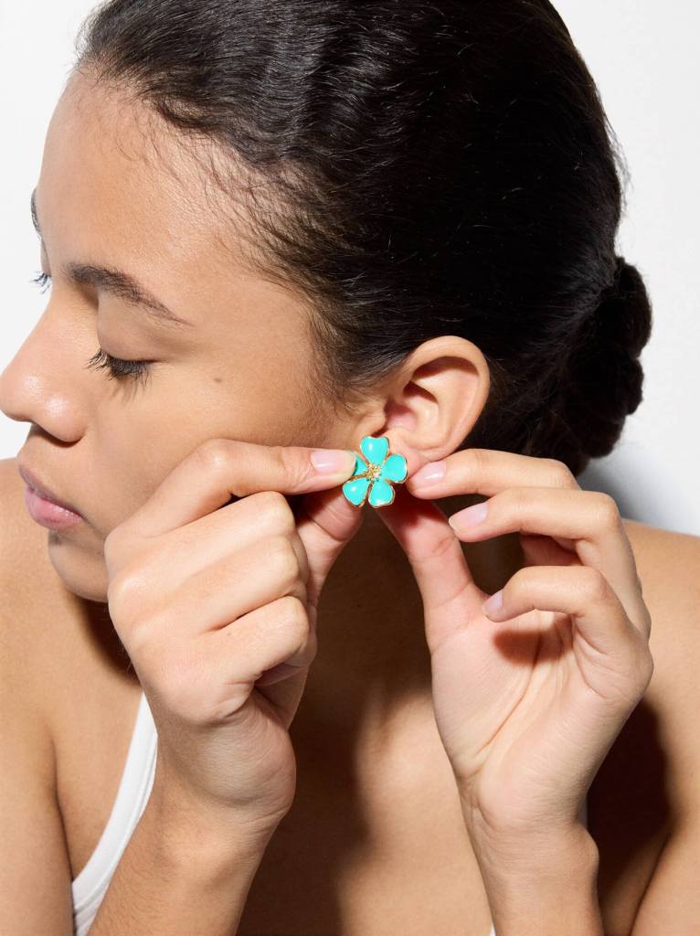 Los pendientes pequeños en forma de flor son unos de los preferidos de las mujeres +50 de pelo corto. Y más con modelos como este de Parfois en azul turquesa, ideales para lucir en las vacaciones por la costa. Son elegantes a la par que bonitos para dar un toque de luz y color al rostro. Al estar rebajados un 50%, cuestan menos de 3 euros (5,99 euros 2,99 euros).