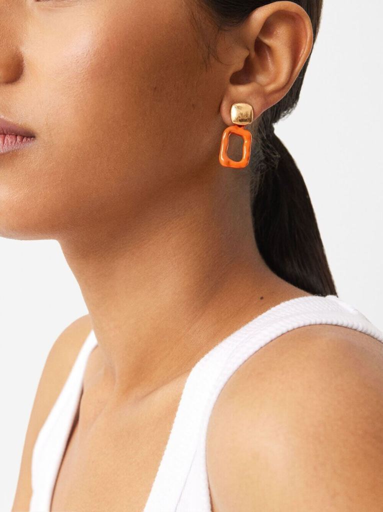 Este tipo de pendientes pequeños que cuelgan nos gustan para eventos especiales, pues no pesan ni son exagerados pero arreglan un montón el look. En este caso, esta opción con silueta irregular de Parfois combina el dorado con el naranja, así que podría contrastar genial con vestidos fucsias, monos en marrón chocolate... Y, una vez más, están tirados de precio por las rebajas (5,99 euros 3,99 euros).