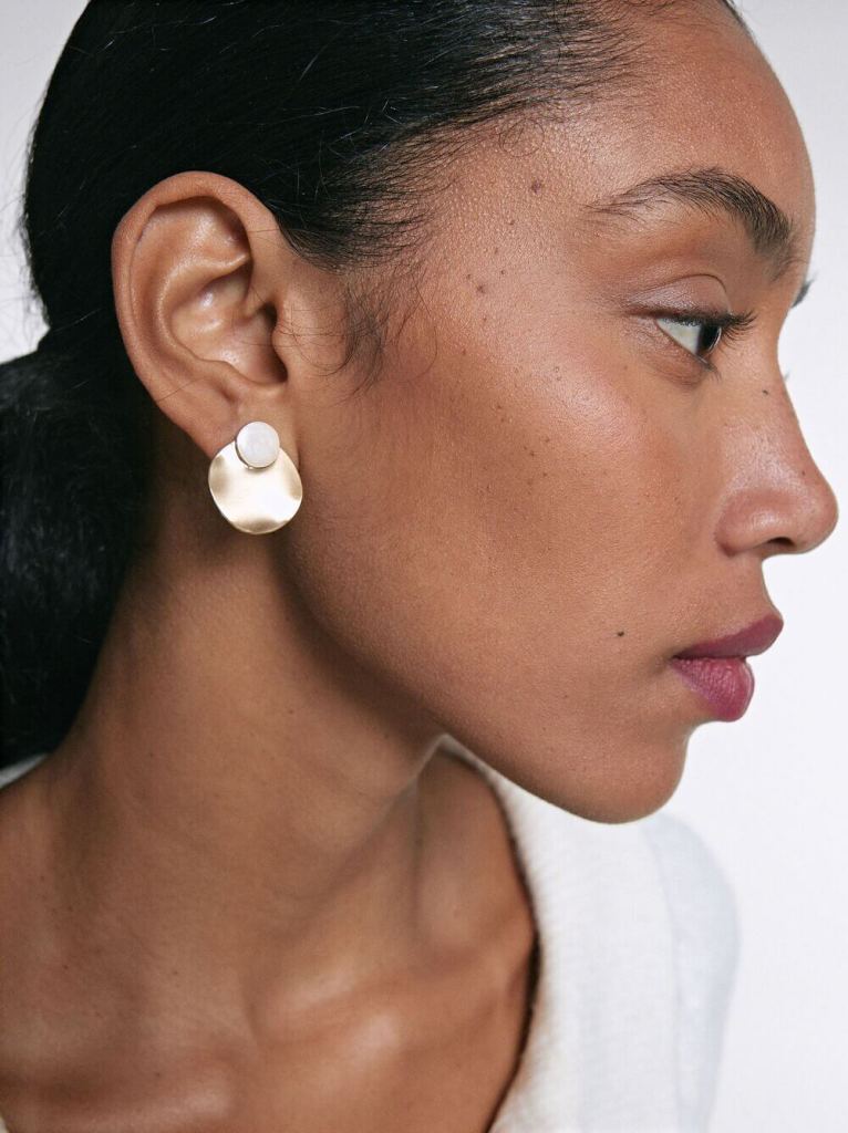 Para las más clásicas que no quieran llevar joyas de colores ni en verano, encontramos en Parfois pendientes pequeños elegantes y minimalistas como este. Formado por dos círculos, uno dorado más grande y otro blanco más pequeño, es una opción perfecta para llevar con un conjunto de lino de día como con un vestidazo de noche (5,99 euros 3,99 euros).