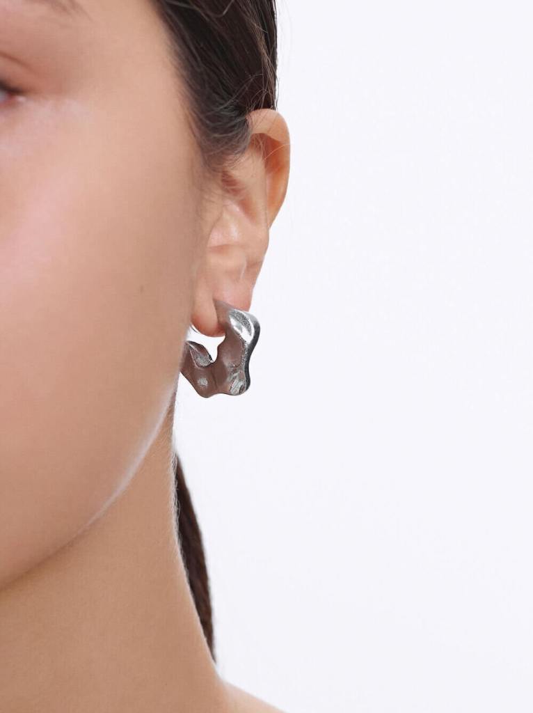 Como has visto en los modelos anteriores predominaba el color dorado, ya que es uno de los tonos más en tendencia en la temporada. Pero en las rebajas de Parfois encontramos también otras opciones en plata, como pueden ser estos pequeños aros irregulares que cuestan menos de 3 euros (5,99 euros 2,99 euros).