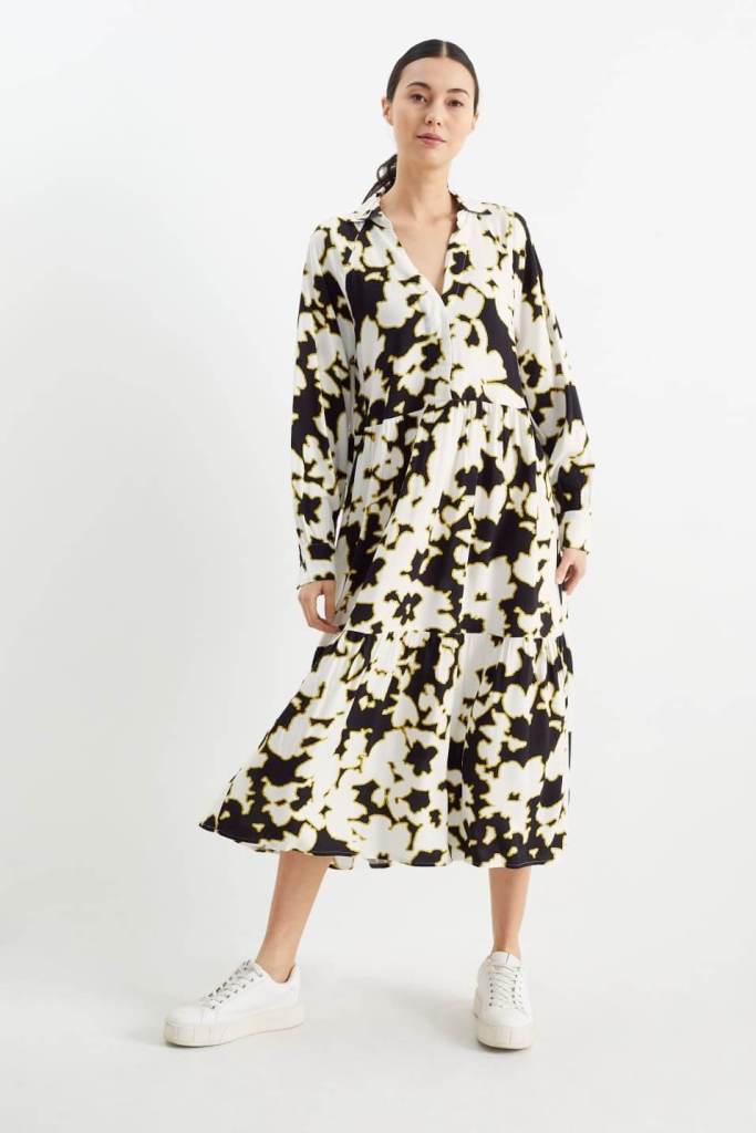 Elegante, favorecedor y precioso para ir a cenar o para un evento en este verano. Así es este vestido de flores de las rebajas de C&A, un modelo que prometen agotar las mujeres +50 tanto por su estampado en blanco y negro como por su silueta cruzada. Y, por supuesto, también por su precio, pues cuesta menos de 17 euros (19,99 euros 16,99 euros).