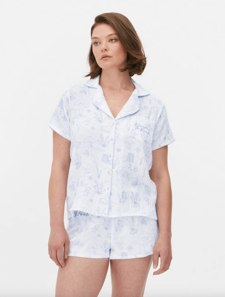 Como última propuesta que corrobora que los pijamas fresquitos de Primark prometen arrasar este verano porque son cómodos, con diseños variados y están tirados de precio, un modelo con estampado de Winnie the Pooh en blanco y azul. Es ideal para los amantes de Disney, y además su print se mimetiza muy bien con el estilo mediterráneo y desenfadado del verano (20 euros).