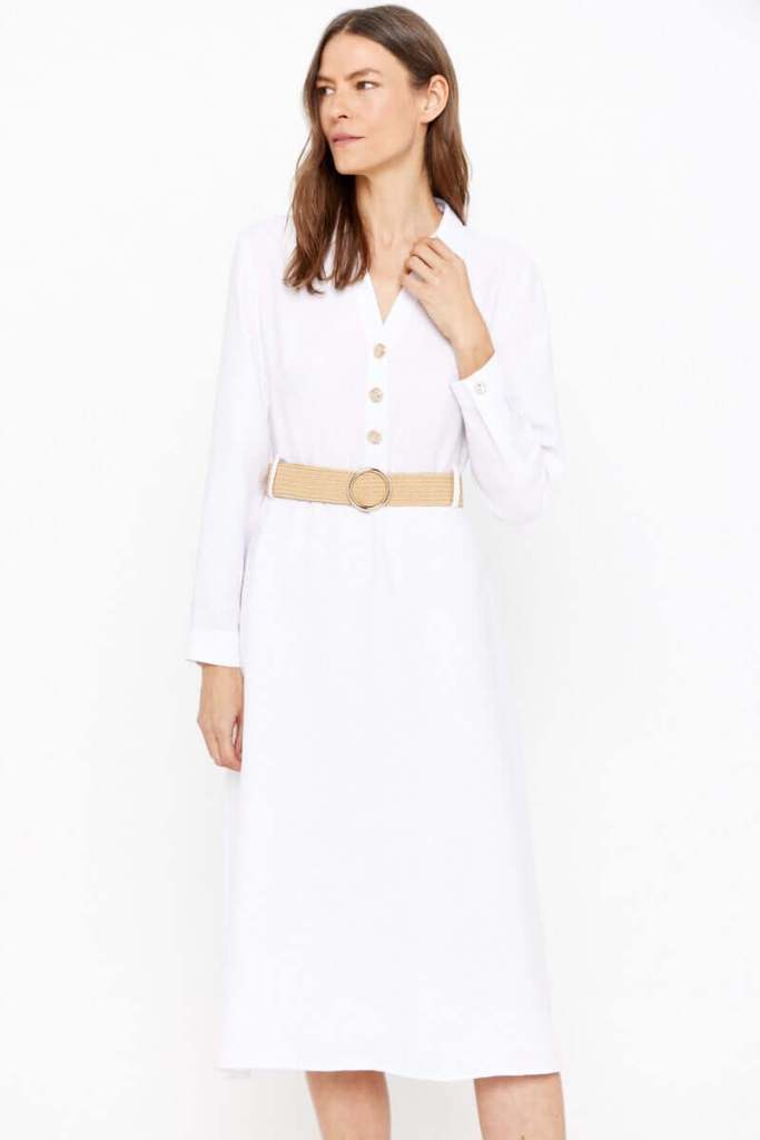 Vestido blanco de estilo camisero con cinturón