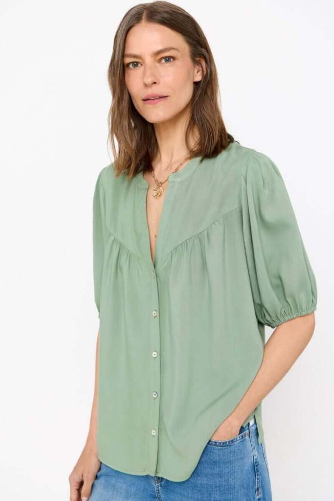 Empezamos con un modelo clásico y súper femenino que es ideal para verano por su tejido fresquito y por su silueta holgada. Esta blusa de Cortefiel con cuello redondo, escote en pico, manga corta abullonada y detalle de canesú con frunces será un objeto de deseo entre las mujeres +50 también por su precio, pues está rebajada de 40 euros a menos de 10 (39,99 euros 9,99 euros). Y su color verde no puede ser más estival.