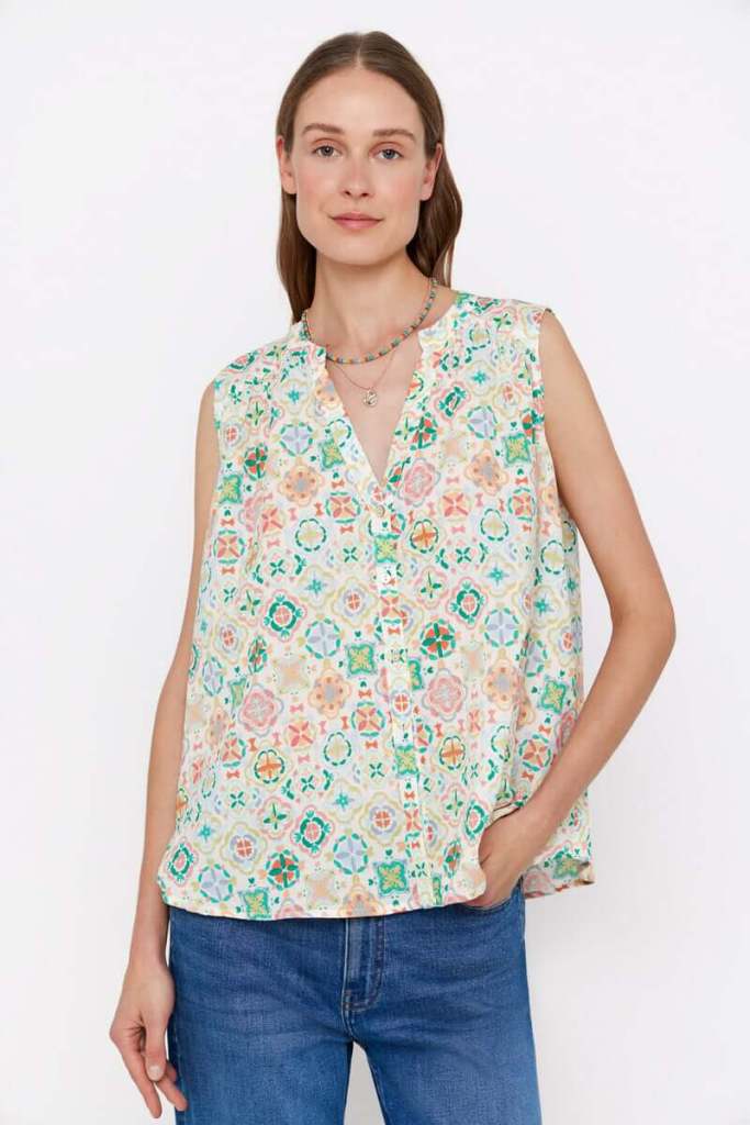 Si buscas una blusa fresquita para diario, desde luego esta opción de Cortefiel es perfecta tanto por su tejido ligero como por su silueta holgada. Con una silueta camisera con manga sisa y cierre frontal con botones ocultos, esta destaca por su colorido y rejuvenecedor estampado de flores. Este es perfecto para llevar tanto con unos pantalones vaqueros cortos como una falda midi de lino. Y, de nuevo, se queda tirada de precio en las rebajas (39,99 euros 9,99 euros).