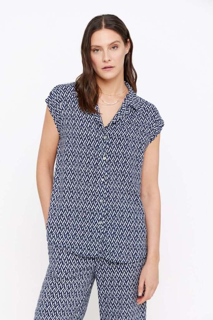 Y como última propuesta, otra blusa estampada que incluso tiene su pantalón a conjunto. Aunque al tener este print azul marino y blanco, nos gusta también para llevar con una falda blanca, por ejemplo. Esta camisa tiene un diseño camisero bastante ancho y cómodo, así que es perfecta para los días de verano de más calor. Y con su descuento del 75% también se queda tirada de precio en las rebajas de Cortefiel (39,99 euros 9,99 euros).