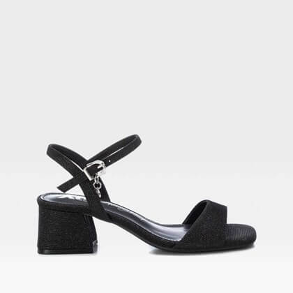 Con detalles en plateados y acabado en tela, tienes estas de la firma Xti. Tiene acabados con brillos y un tacón cuadrado de 5 cm de altura. 9,99 euros.