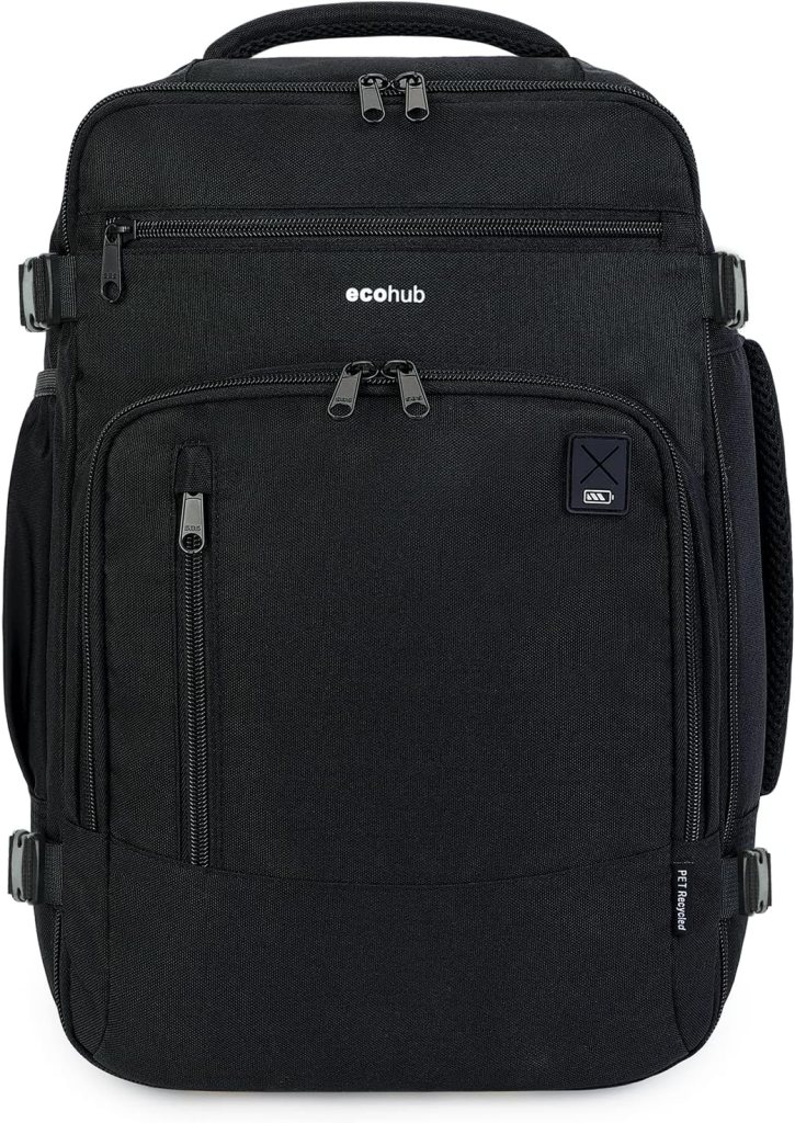 En plataformas de venta como Amazon venden mochilas con el tamaño exacto para no tener ningún problema en Ryanair. Por ejemplo, este diseño de ECOHUB tiene unas medidas de 40 x 20 x 25 cm e incluye un compartimento para el ordenador en la parte trasera con correa acolchada y elástica por si vas a teletrabajar en tu destino. El precio es de 43,34 euros.