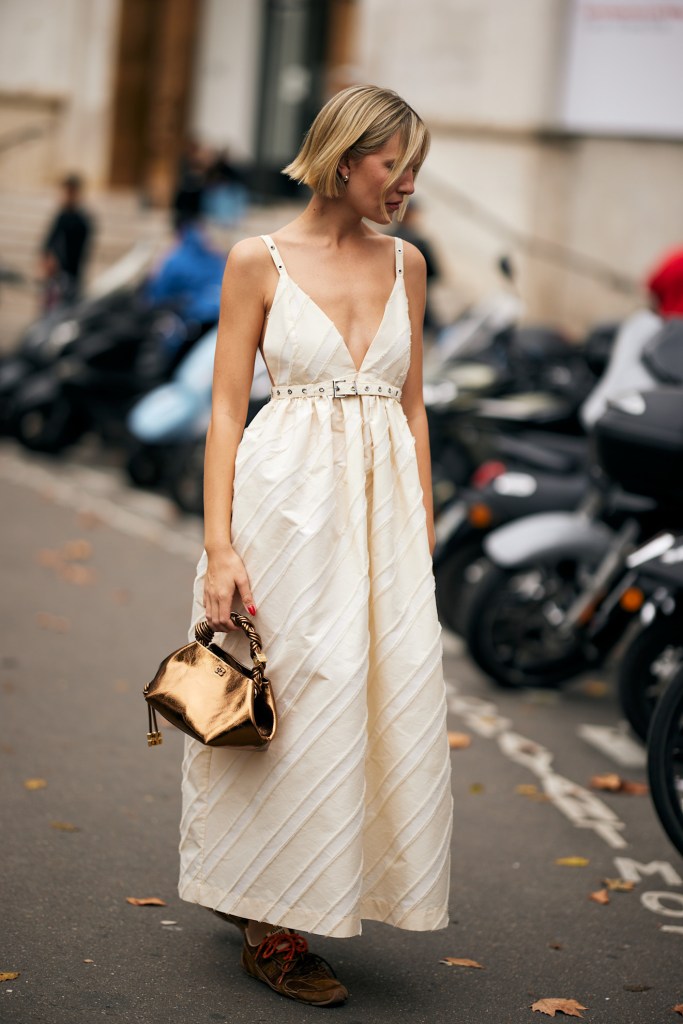 - Mejor vestidos largos. Si vestimos vestidos cortos, sobre todo esos que van a la altura de la rodilla, no conseguiremos el objetivo de alargar el cuerpo y vernos más estilizadas. En cambio, con un vestido largo sí que lo logramos.