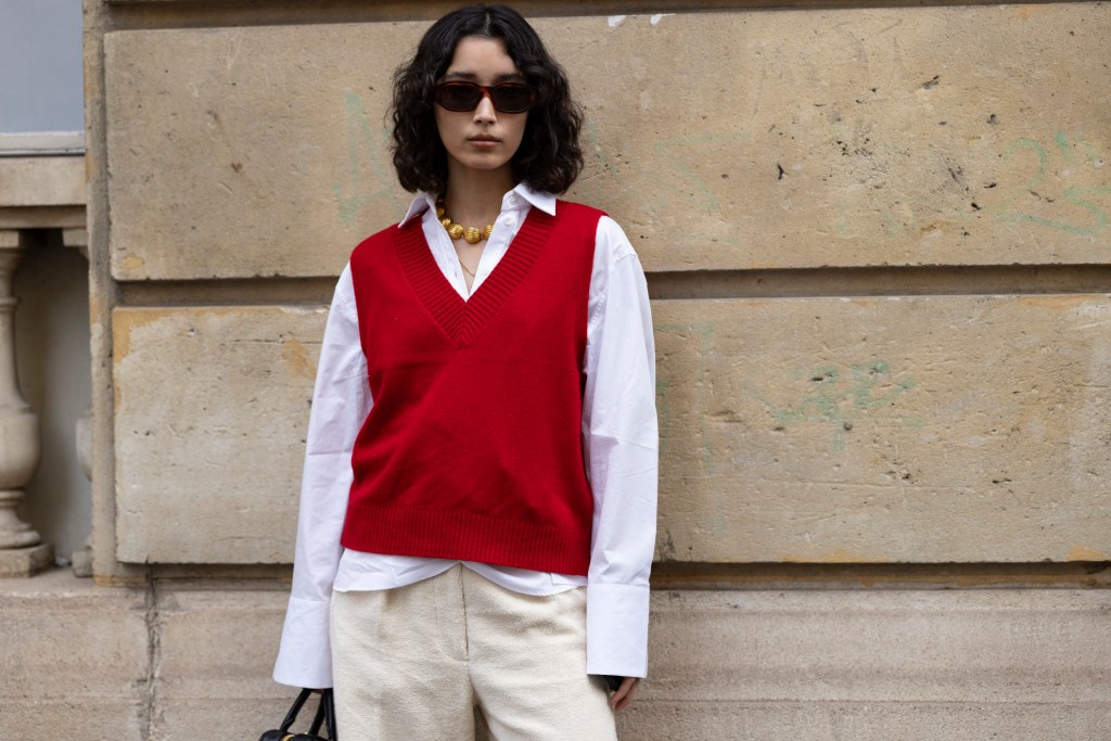 Y otra opción que no podía faltar en esta selección de colores que combinan con el rojo es el versátil beis. Este pega con absolutamente todo, así que para estos estilismos de diario básicos y desenfadados, nada mejor que contar con este color todoterreno y añadir toques de rojo para poner el toque diferencial.