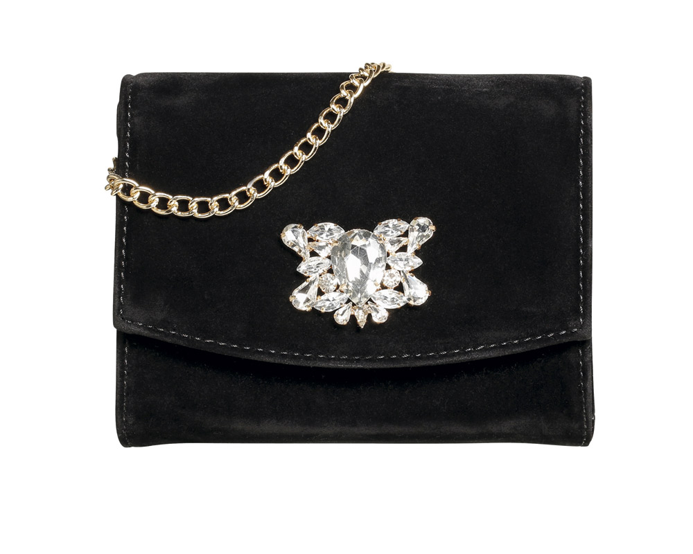 Una cartera de estilo clásico con detalle de pedrería en la solapa. 14,90 €, C&A.