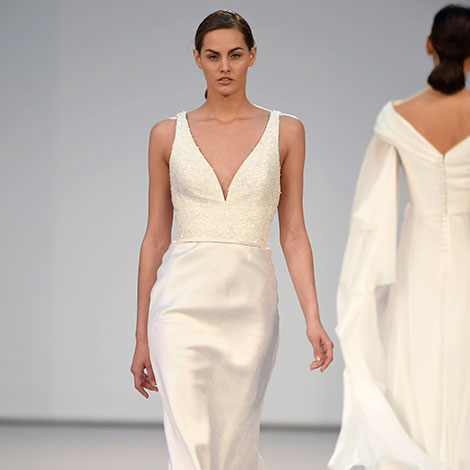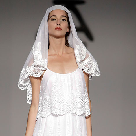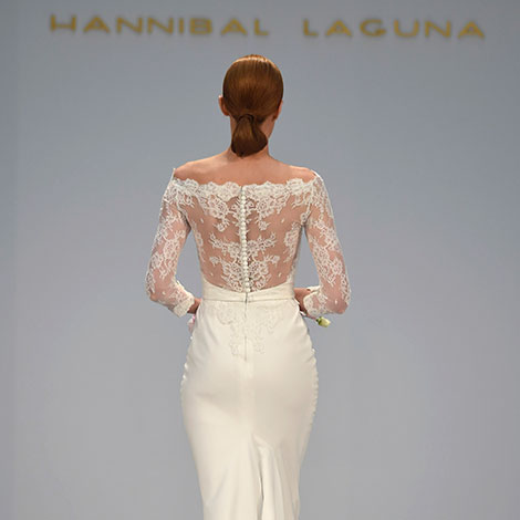 Hannibal Laguna también ha dejado paso a los looks depurados y sencillos con un toque de sofisticación. Una apuesta en firme por el aire atemporal de las novias.