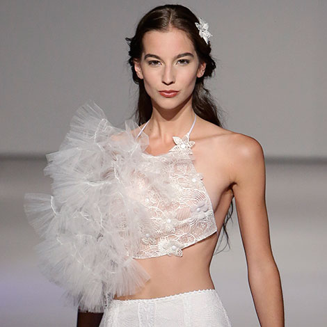 También hay sitio para los looks atrevidos. Las novias de Tony Bonet apuestan por un toque descaro gracias a sus mini tops y sus trasnparencias en zonas estratégicas.