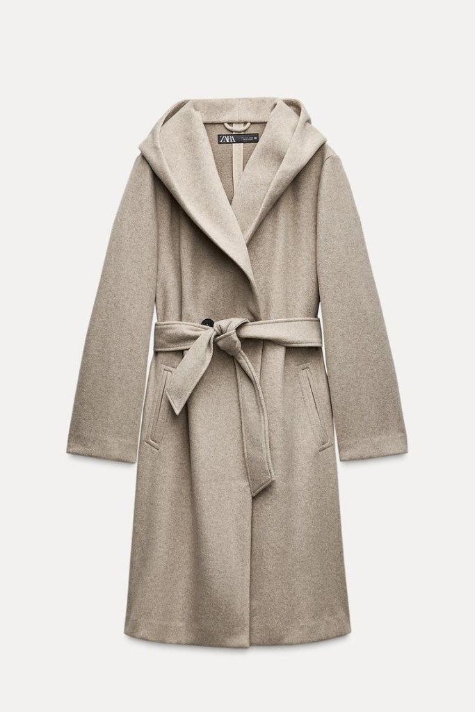 A diferencia del de Massimo Dutti, el abrigo de Zara tiene añadida una capucha. También cambia el color, ya que esta opción es en un gris claro. Con un diseño más estructurado, esta prenda está confeccionada en poliéster reciclado con certificado RCS. El precio no está rebajado y es de 39,95 euros.