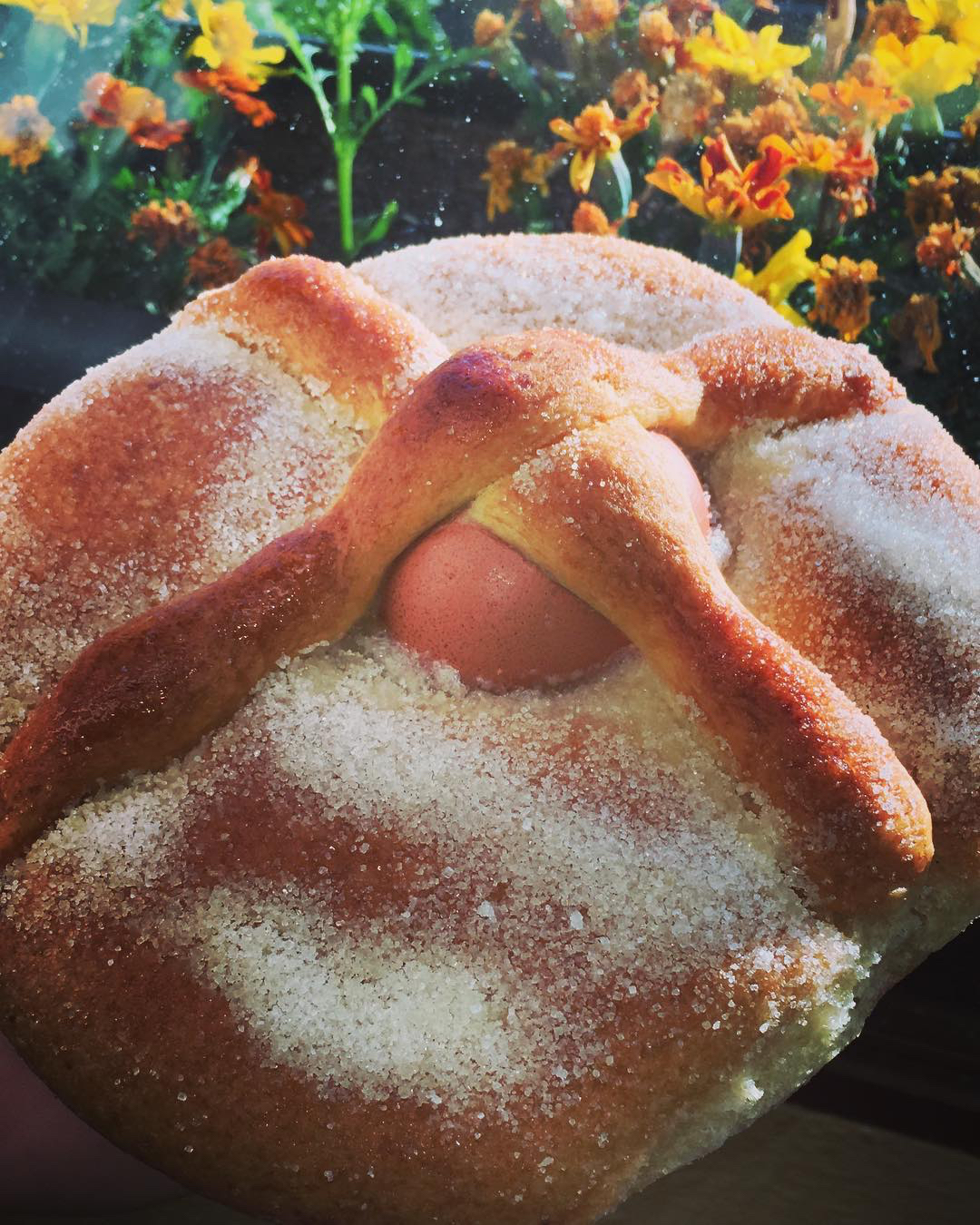 Se trata de una torta de aceite de oliva coronada con un huevo duro, aún con cáscara, en el centro. Pero es dulce, no confundir con el salado de otras zonas como Salamanca.
