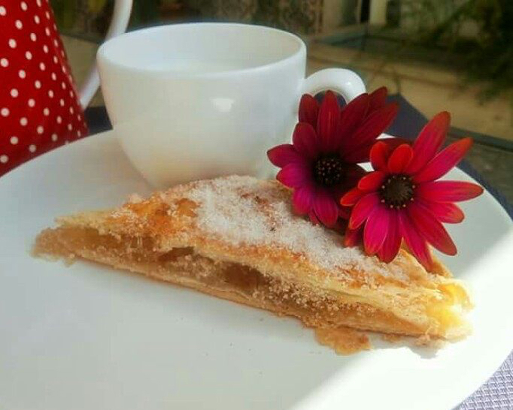 Encontrarás este dulce en la mayoría de cafeterías y restaurantes de Córdoba. Es ideal para tomar con el café y una excelente merienda para los más pequeños. Es una torta de hojaldre, normalmente con relleno de cabello de ángel o cidra. Suele tener forma circular, y se come por porciones.