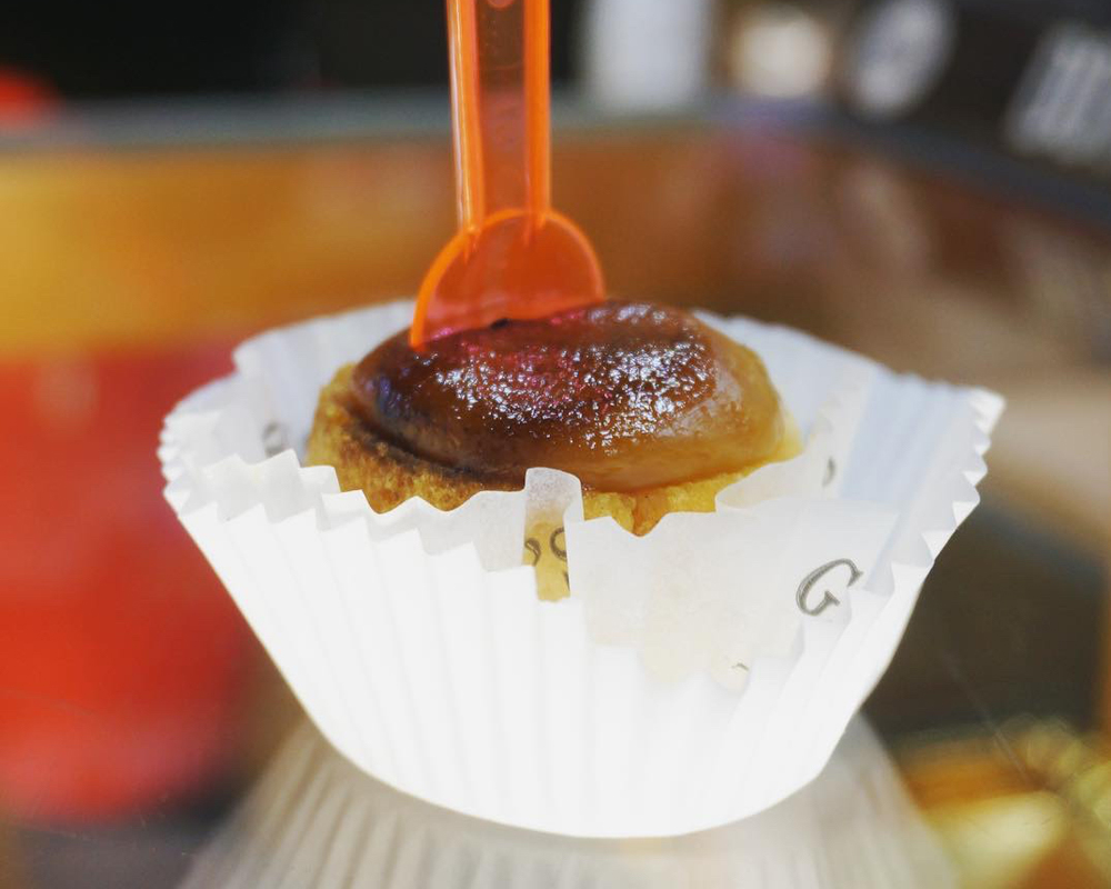 Si pides una torta loca, otra especialidad malagueña, te servirán dos discos de hojaldre con crema pastelera y glaseado de naranja por encima. A veces, está coronado con media guinda.