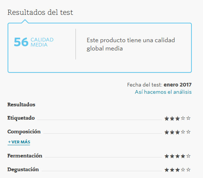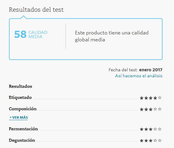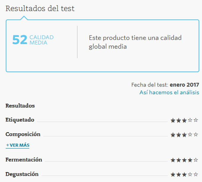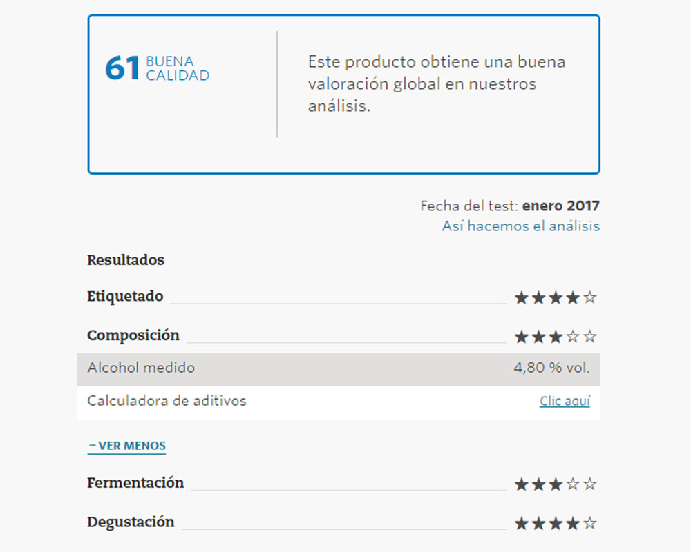 Su origen es español. Una lata de 330 ml cuesta entre 0,28 y 0,31 €. Contiene malta de cebada y la valoración que le da la OCU es de 59 sobre 100.