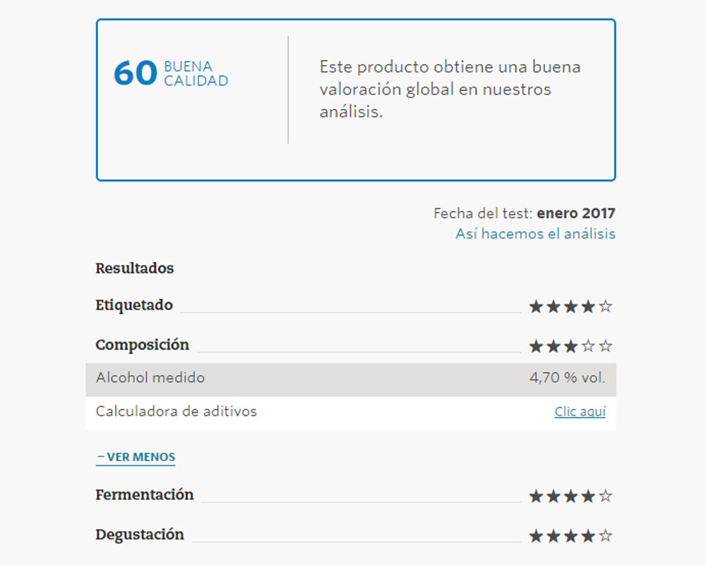 La OCU ha realizado el estudio a través del análisis de cervezas rubias lager, en todas sus categorías. El resultado se ha obtenido mediante el control del contenido del envase, el grado de alcohol, el contenido de gas, el extracto seco real, el extracto seco primitivo, el grado de fermentación, la acidez, el pH y el SO2, de cada cerveza. Y para finalizar, se ha realizado una degustación.