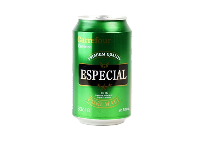 Carrefour Especial es la marca premium de este supermercado. Una lata de 33 cl. la puedes encontrar a un precio que oscila entre los 0,42 y los 0,44 €.