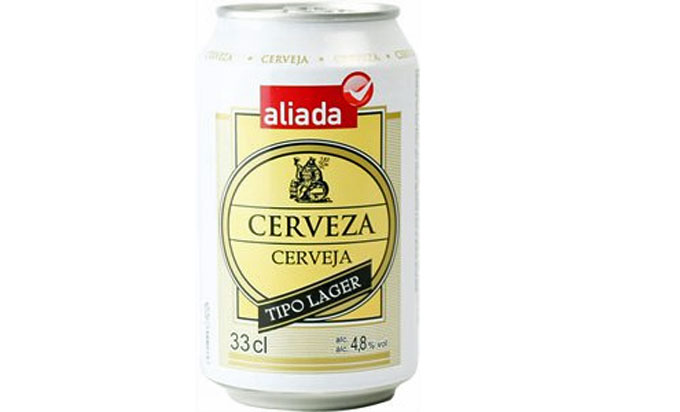 La marca blanca de El Corte Inglés, Aliada, también tiene un hueco en este ranking. La cerveza tipo lager ha sido valorada con 54 puntos, sobre 100. La lata de 33 cl. cuesta entre 0,25 y 0,26 €. Se produce en España y sus ingredientes principales son: agua, malta de cebada, maíz, cebada, lúpulo, colorante E-150c y estabilizante E405.