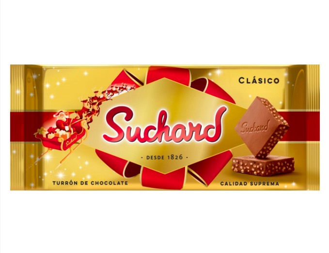 Este turrón de chocolate crujiente es un clásico. La tableta, de calidad suprema y 260 gramos suele costar en torno a los 3 euros. De Suchard.