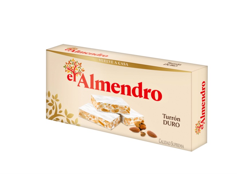 Elaborado con un altísimo porcentaje de almendra tostada, este turrón, de Calidad Suprema, es el resultado de la mezcla de la exquisita almendra con el caramelo (miel y azúcar), al que se le añade clara de huevo para conseguir el característico color blanco. La tableta de 250 gramos cuesta alrededor de 4 euros en cualquier supermercado. De El Almendro.