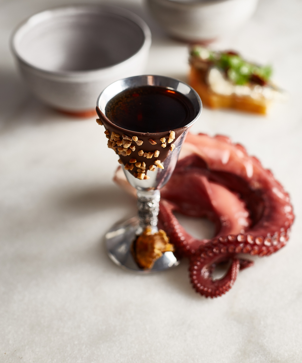 El cóctel inspirado en Mario Sandoval, chef del restaurante Coque, 2 estrellas Michelin, se llama “Cook-a-doole-doo” y tiene un sabor especiado en honor al plato de la anécdota gastronómica de Mario. Para él, no hubo un momento exacto en el que decidió su vocación. “Crecí entre los fogones del negocio familiar. Los recuerdos están asociados a los olores y sabores de la cocina. Los guisos tradicionales, como la pepitoria de mi madre, me han marcado a nivel profesional”, recuerda.