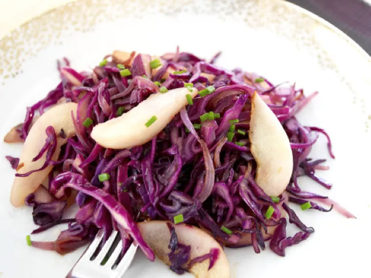 Combinar las castañas con una de las verduras más típicas de la temporada invernal, la lombarda, es todo un acierto. Las peras ya redondean el trabajo y dan como resultado un plato de diez.