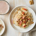 - Manzana salteada en la sartén con aceite de coco, nueces, polen y leche de almendras o coco calentada con unas ramas de canela. ¡Te encantará!