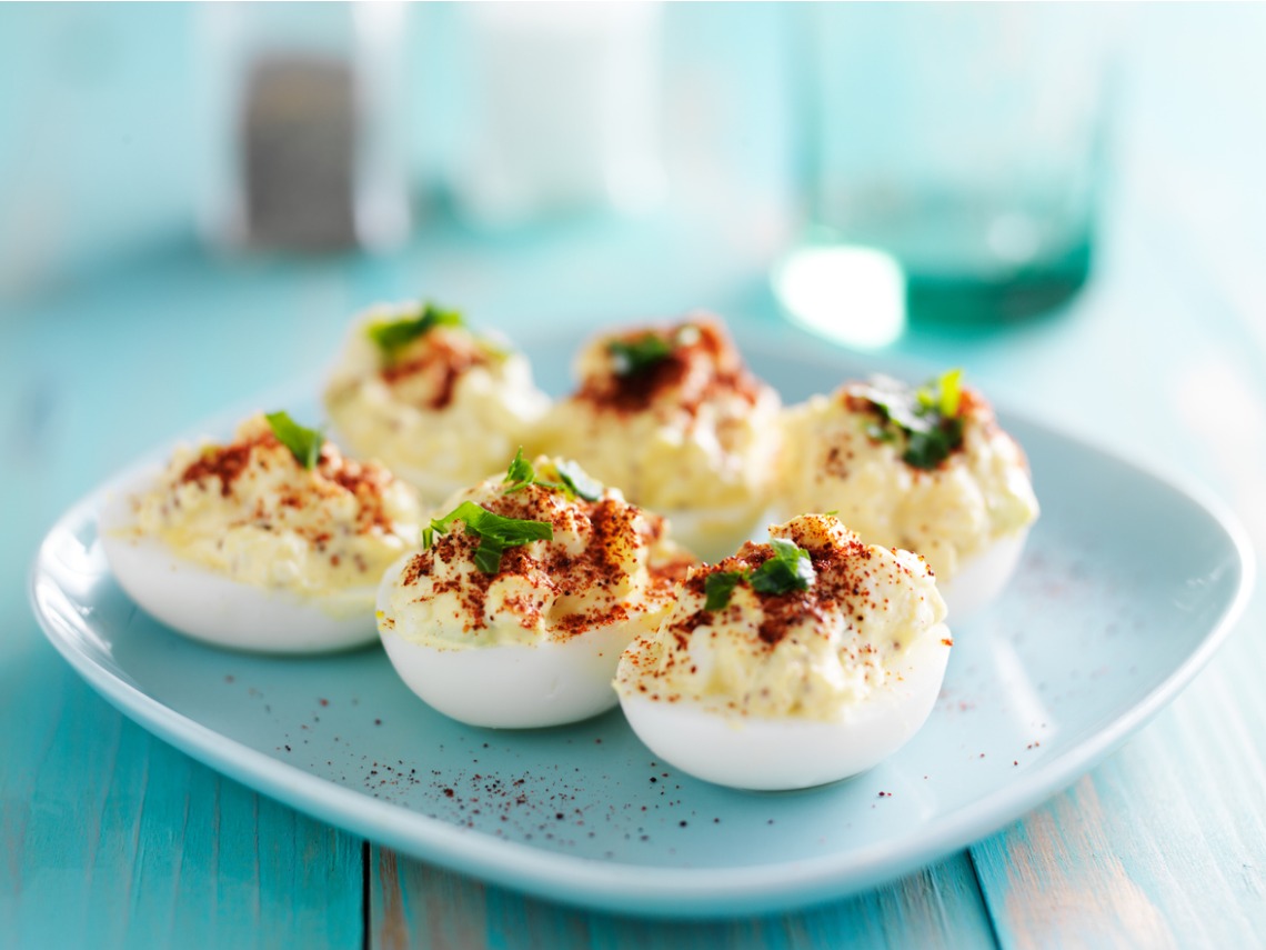 - Una vez esté listo el relleno, coloca la soja en el interior de cada mitad de clara.