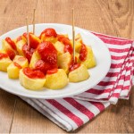 patatas bravas sobre mesa de madera