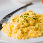 Puedes controlar la forma de tus huevos revueltos, ya que se amoldarán a la forma del plato que uses. Piensa si quieres incluirlos en el interior de algún bollo, porque podría estar bien elegir un recipiente circular y pequeño, por ejemplo.