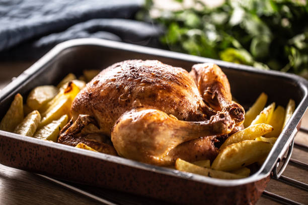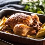 - Calienta 50 ml de aceite en una sartén y dora los pollitos. Ponlos sobre las escalonias, reserva 2 cucharadas de aceite y rocía con el resto. Hornéalos a 200 oC durante 20 minutos.
