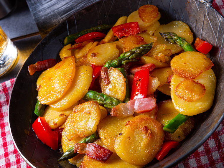 Cinco siglos después de ser descubierta, la patata es protagonista de algunas de las mejores recetas de nuestra cocina y es acompañamiento imprescindible de multitud de platos en cualquiera de sus versiones: fritas, asadas, cocidas, salteadas, rellenas, a lo pobre, etc.