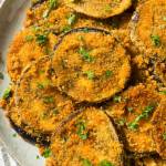 - Una vez que las berenjenas estén listas, retira el exceso de leche y colócalas en una fuente. Sazónalas y espolvoréalas con ajo y pimentón en ambos lados.