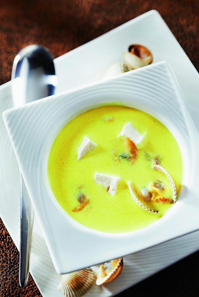 Sopa de berberechos y coco