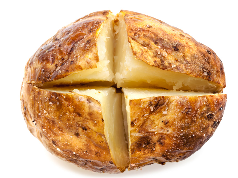 Por ejemplo, para conseguir el característico dorado crujiente del exterior, no vale cualquier tipo de patata. Las mejores patatas para hornear son las “harinosas”, normalmente con la piel amarillenta y gruesa y de textura seca, ya que contienen menos humedad. Variedades comunes son la Russet, la Bintje, la King Edward y la Maris Piper.